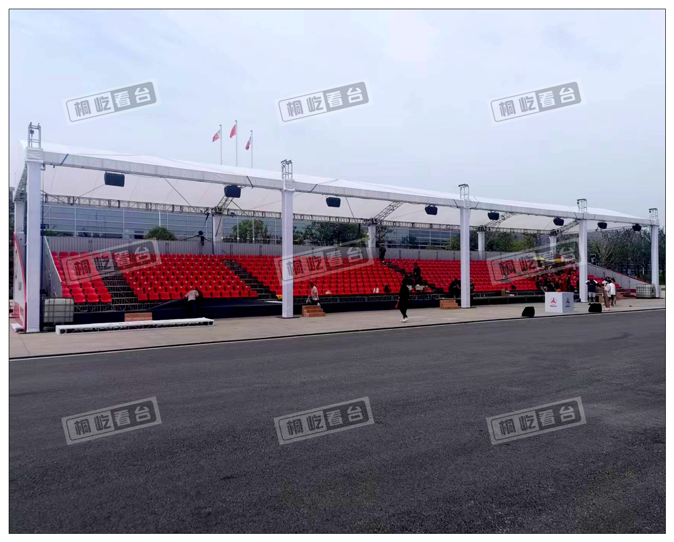 可提供临时看台配套遮阳蓬,根据看台规模,配合特定规格及制式篷房,可提供传统铝合金篷房及各种膜结构篷房。